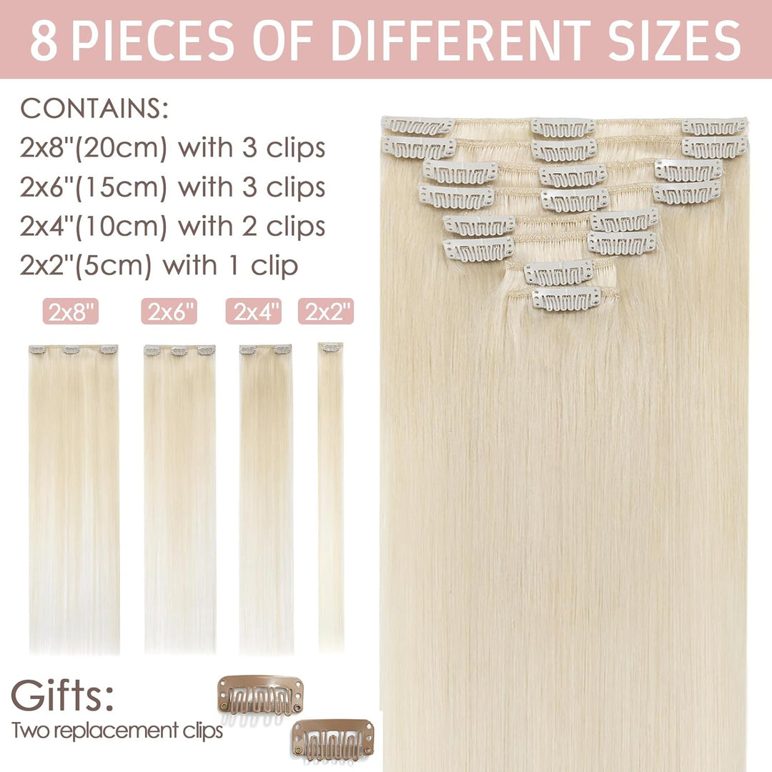 - 【100% echtes haare, natürlicher und komfortabel】 clip in extensions sind aus hochwertigem brasilianischem remy echthaar, seidig glatt mit extra glanz und ohne verwicklungen. die dicke ist von kopf bis schwanz gleich. Dauerhafte extensions echthaar