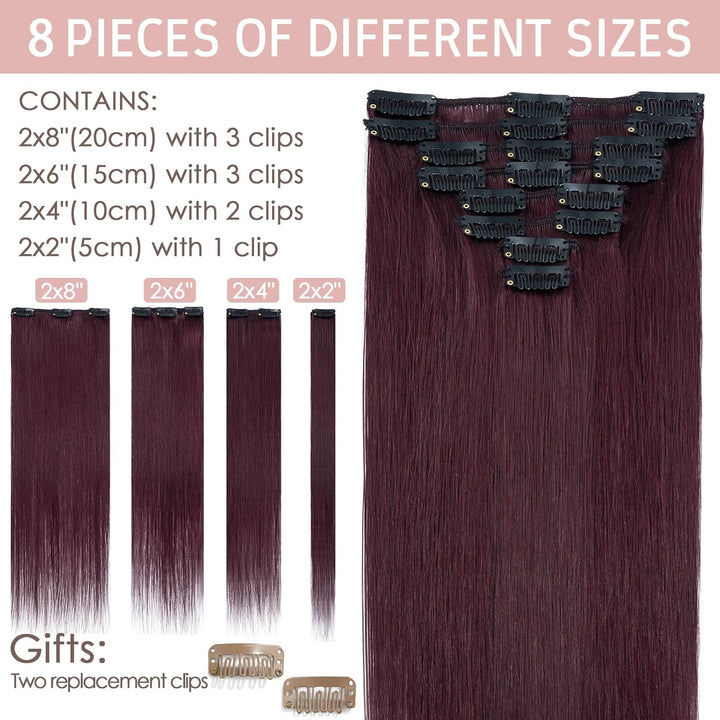 - 【Mehr Auswahl, mehr Vielfalt】Silk-co hair extensions clip in, 8 Stück mit 18 Clips pro Set. Je nach Länge wiegt das Haar etwa 45-80g. Um Ihr Haar zu verdichten, empfehlen wir 1-2 Packungen; für einen vollen Kopf empfehlen wir 2-3 Packungen. Wir