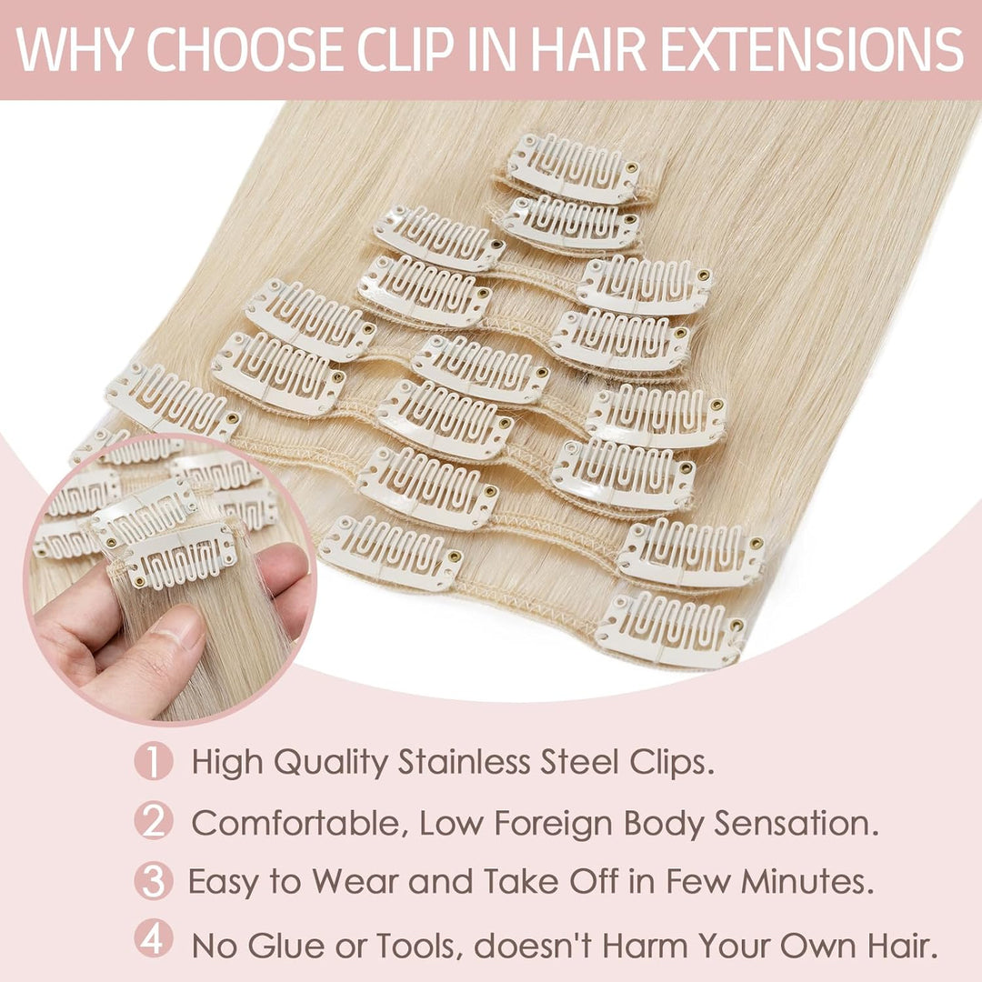 - 【Mehr Komfort und Bequemlichkeit】 Im Gegensatz zu traditionellen echthaar extensions haben clip in extensions kein Band und sind nicht schädlich für Ihre Kopfhaut oder Ihr Haar. Unsere Clip-in-Haarverlängerungen sind so konzipiert, dass sie die