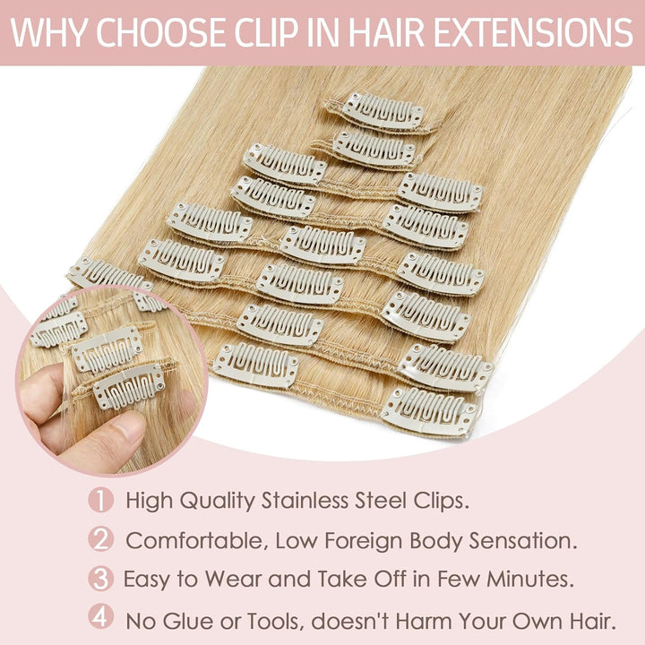 - 【Mehr Komfort und Bequemlichkeit】 Im Gegensatz zu traditionellen echthaar extensions haben clip in extensions kein Band und sind nicht schädlich für Ihre Kopfhaut oder Ihr Haar. Unsere Clip-in-Haarverlängerungen sind so konzipiert, dass sie die