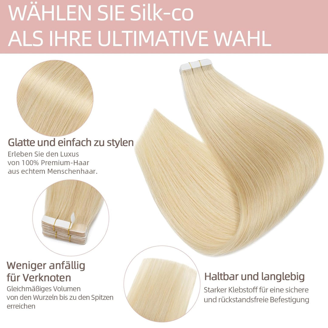 - Erstklassiger Kundenservice und Pflegehinweise - Bei Silk-co liegt uns Ihre Zufriedenheit am Herzen. Unser engagierter Kundenservice ist immer für Sie da, um sicherzustellen, dass Sie mit Ihren echthaar extensions tape vollkommen zufrieden sind. Wir