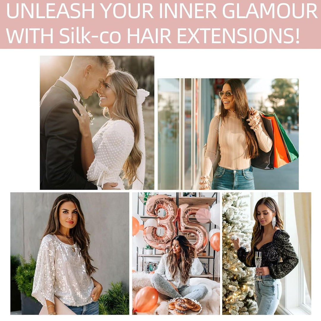 - Mehr Farboptionen für vielfältige Styles: Silk-co Haarverlängerungen bietet eine breite Auswahl an Haarfarben, von natürlichem Schwarz bis hin zu schmutzigem Blond, sowie Highlights und Balayage-Effekte. Wählen Sie die passenden Haarverlängerungen