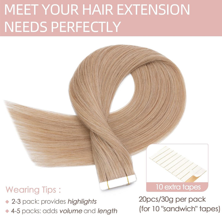 - Leichte und schonende Tape-Extensions: Unsere speziell für feines Haar entwickelten Haarverlängerungen wiegen nur 1,5g pro Extension (bei Längen unter 14 Zoll wiegt jede Extension 1g), um Haarschäden zu minimieren. Das geringere Gewicht reduziert das