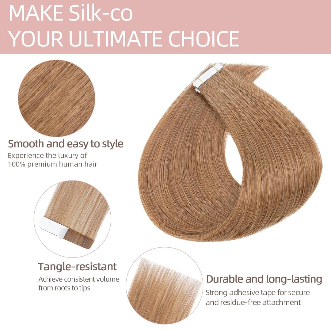 - Mehr Farboptionen für vielfältige Styles: Silk-co Haarverlängerungen bietet eine breite Auswahl an Haarfarben, von natürlichem Schwarz bis hin zu schmutzigem Blond, sowie Highlights und Balayage-Effekte. Wählen Sie die passenden Haarverlängerungen