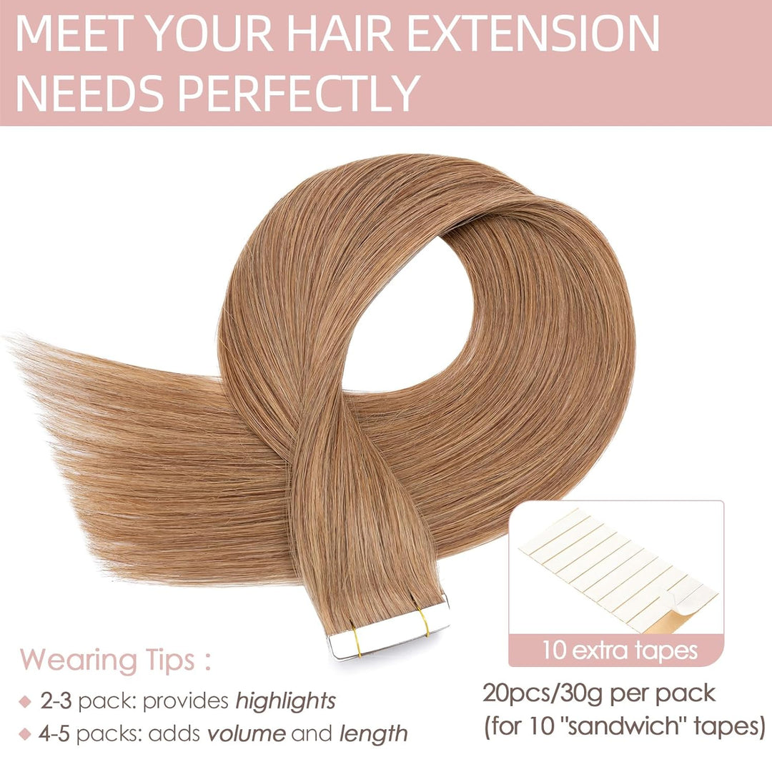 - Natürliches und komfortables Echthaar: Unsere Tape-In-Echthaarverlängerungen bestehen aus hochwertigem brasilianischem Remy-Haar und sind seidig glatt mit extra Glanz. Sie sind von der Haarwurzel bis zur Spitze gleich dick und können bei richtiger