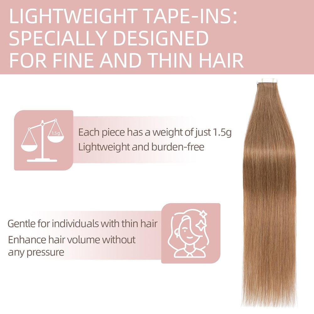 - Leichte und schonende Tape-Extensions: Unsere speziell für feines Haar entwickelten Haarverlängerungen wiegen nur 1,5g pro Extension (bei Längen unter 14 Zoll wiegt jede Extension 1g), um Haarschäden zu minimieren. Das geringere Gewicht reduziert das