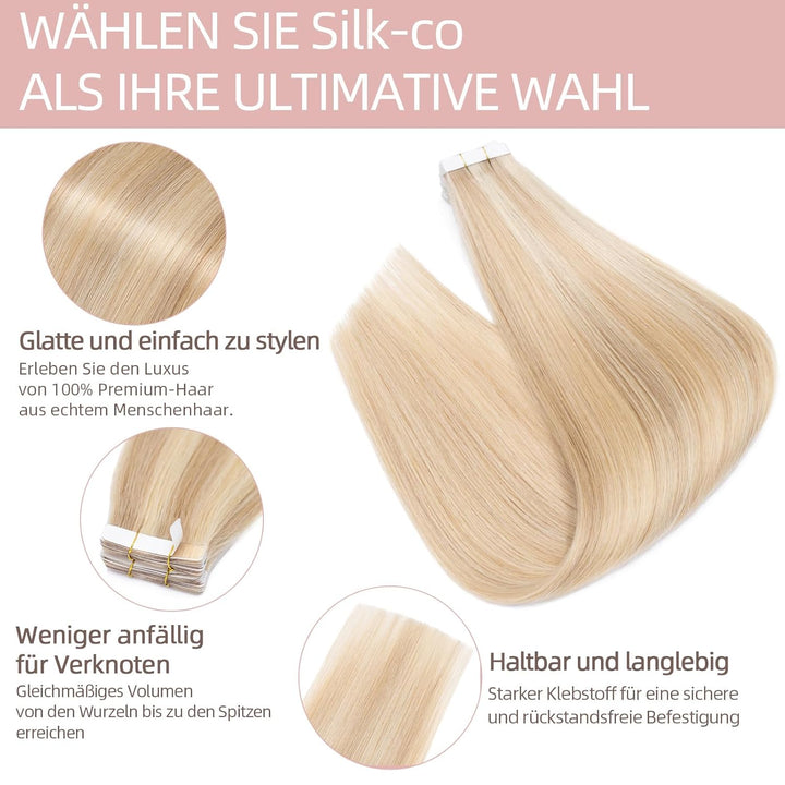 - Mehr Farboptionen für vielfältige Styles: Silk-co Haarverlängerungen bietet eine breite Auswahl an Haarfarben, von natürlichem Schwarz bis hin zu schmutzigem Blond, sowie Highlights und Balayage-Effekte. Wählen Sie die passenden Haarverlängerungen