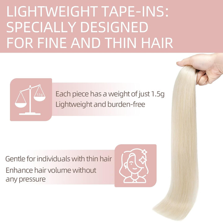 - Federleichter Tragekomfort mit Tape Extensions Echthaar- Geniessen Sie höchsten Komfort mit unseren Tape-in Extensions Echthaar von Silk-co. Jede Strähne ist so konzipiert, dass sie Ihr Eigenhaar schont und mit einem Gewicht von nur 1-1,5 Gramm nahezu