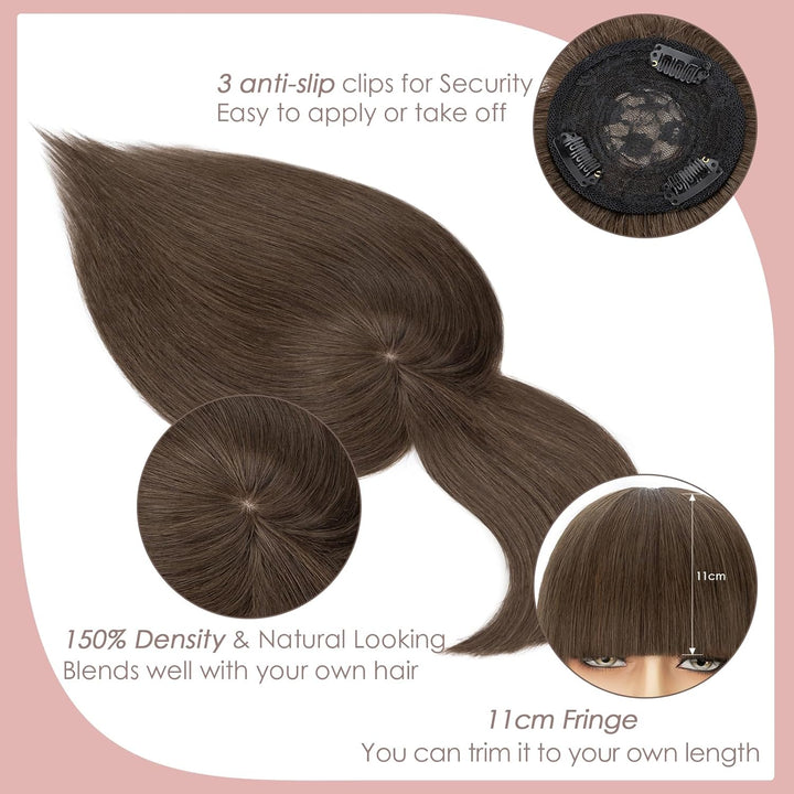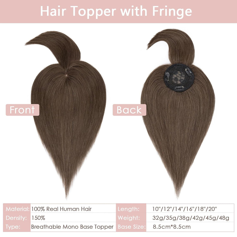 - ♥8.5x8.5cm Base♥ Mit 8.5x8.5cm Mono-Base und 11cm lang Pony lässt das Haarteil (150% Dichte) sehr realistisch, gasdurchlässig und bequem sein.