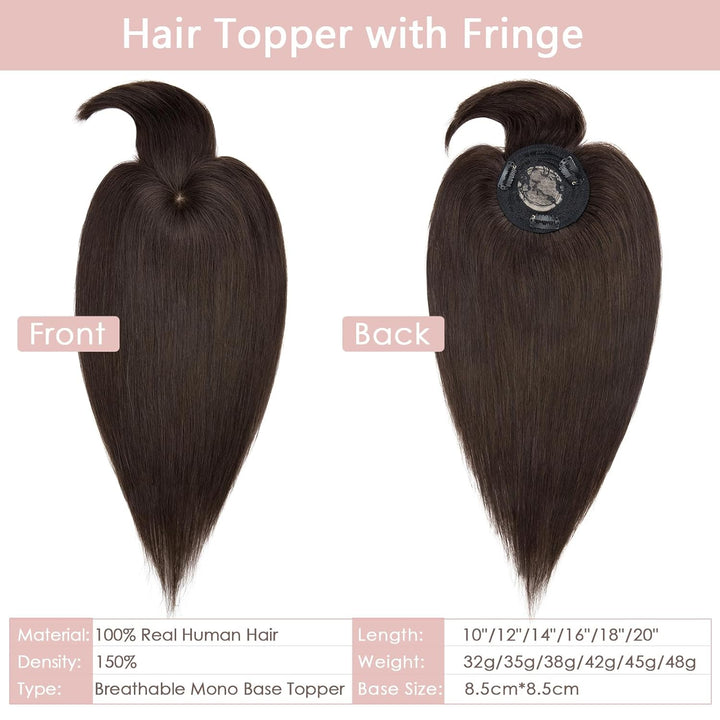 - ♥8.5x8.5cm Base♥ Mit 8.5x8.5cm Mono-Base und 11cm lang Pony lässt das Haarteil (150% Dichte) sehr realistisch, gasdurchlässig und bequem sein.