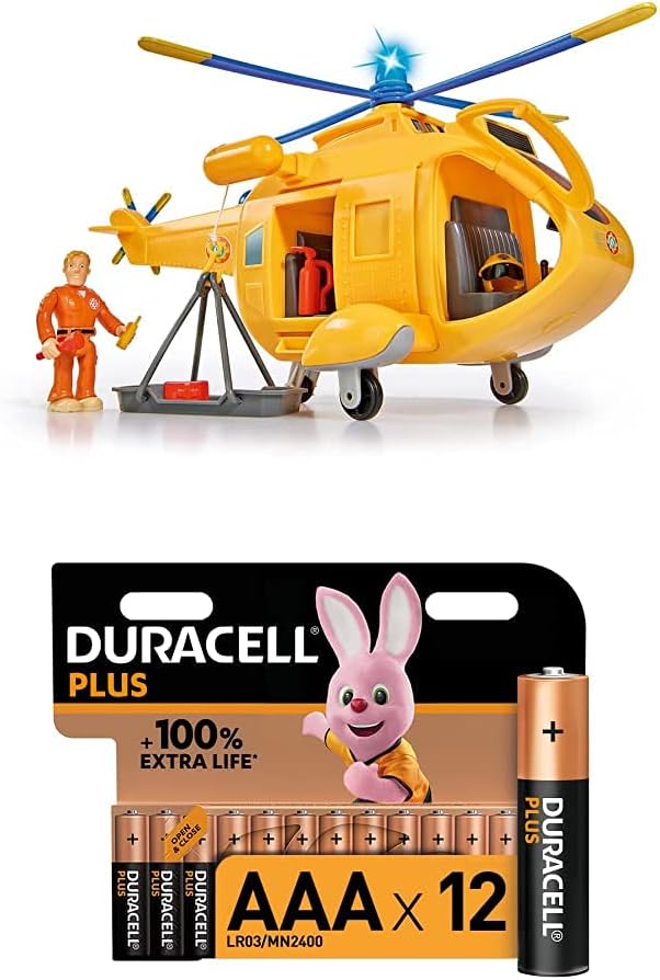 - Mit Originalsound und drehbarem Rotor - Drückt man auf den Knopf an der geschlossenen Seite des Hubschraubers setzen sich die Rotoren in Bewegung und der passende Sound ertönt. Benötigt werden 3x R03 Batterien. Diese sind nicht im Set enthalten