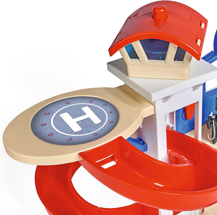 - Mit Rutsche und Sound - über die Rutsche können die Feuerwehrleute schnell auf die unterste Plattform gelangen und von dort aus den Kran mit dem Fangnetz bedienen. Die Wasserwacht verfügt über zwei verschiedene tolle Sounds, die per Knopfdruck eingeschaltet werden können.