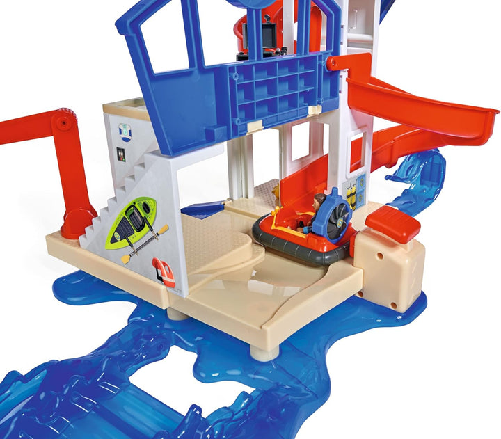 - Grosse Wasserwacht mit Landeplatz - die Wasserwacht aus der Serie Feuerwehrmann Sam ist die Einsatzzentrale der Wasserrettung. Von dort können die mutigen Feuerwehrleute zu den Einsätzen im Wasser starten. Sie verfügt über einen Hubschrauberlandeplatz, auf dem die Helikopter landen und starten können.