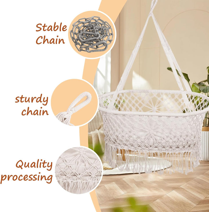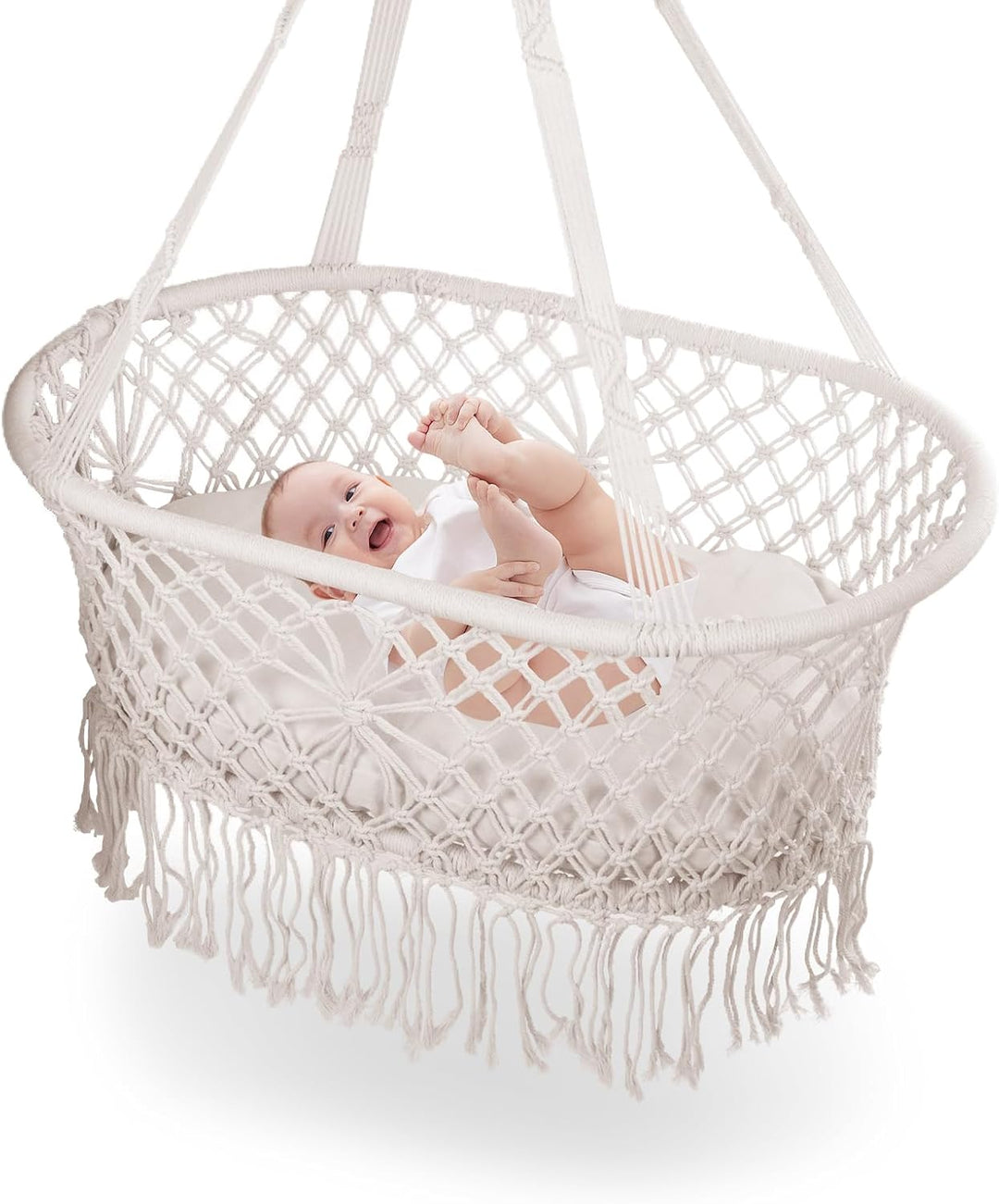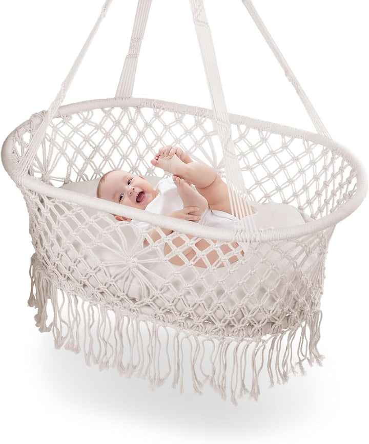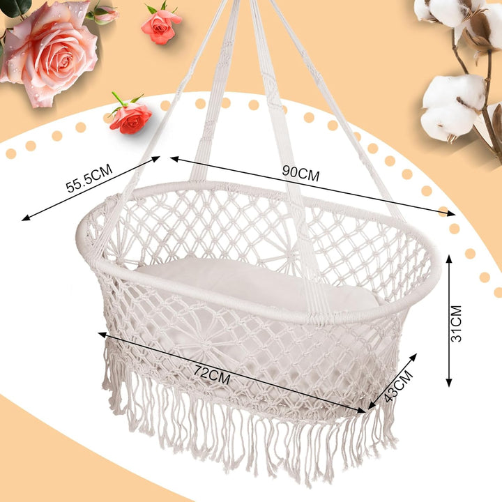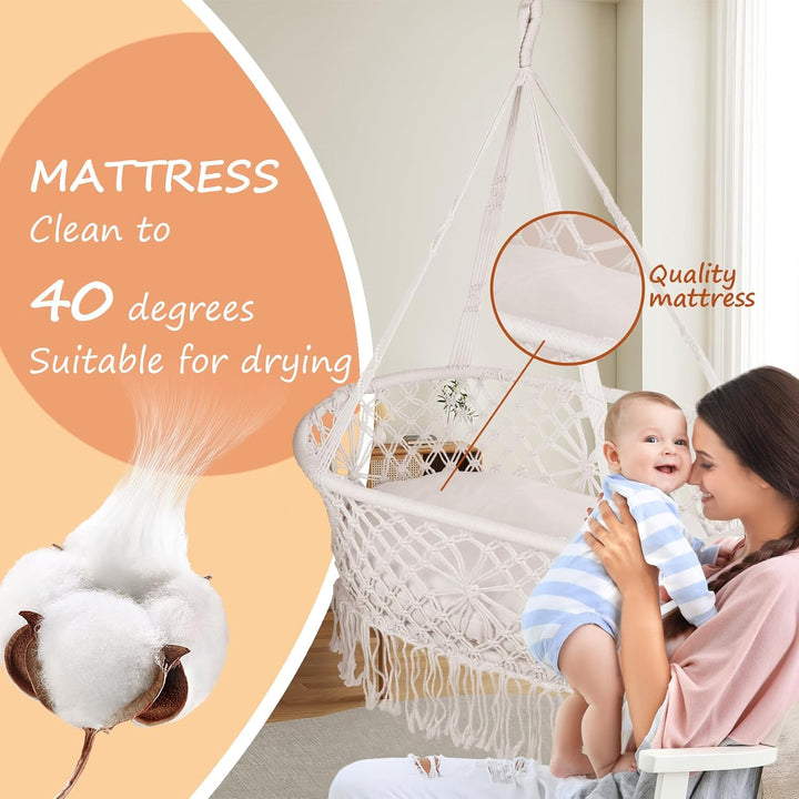 - Sicher und schön: Geflochtene Quasten, einen einzigartigen und stilvollen Raum zu schaffen. Die Babywiege im modernen Makramee-Look passt zu wirklich jeder Einrichtung und ist dank des vollständigen Liefersets direkt einsatzbereit und kinderleicht
