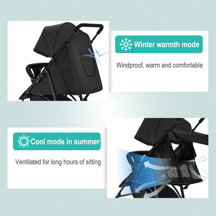 - đŒăFĂŒr jedes Wetteră: Das grosse Verdeck ist ausziehbar und hat ein Fenster auf der RĂŒckseite fĂŒr den Kontakt mit Ihrem Kind. Doppellagiges Design auf beiden Seiten. Die Ă€ussere Schicht ist ein winddichter Stoffvorhang, und die innere Schicht