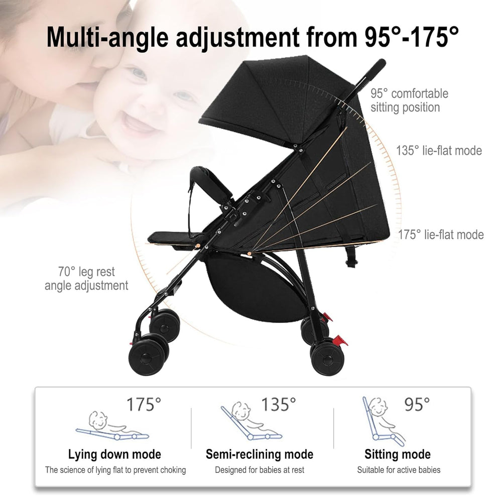 - đŒăEinstellbară: Dieser Kinderwagen hat eine RĂŒckenlehne mit festem Polster, eine PP-Zwischenplatte, die umweltfreundlich, geruchlos, schimmelfrei und gut fĂŒr die Entwicklung des Babys ist. Der Winkel der RĂŒckenlehne des Kinderwagens ist frei