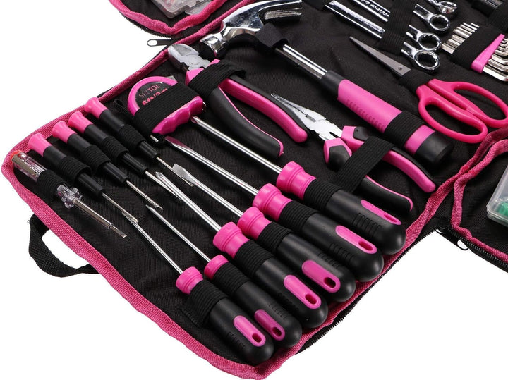 - Das Set HOME PINK 120 ist für alle Heimwerker geeignet, egal ob Anfänger oder Fortgeschrittene, die gängige kleinere Reparaturen in Haus, Werkstatt, Garage oder unterwegs erledigen, wo immer ihre Hilfe benötigt wird. Die rosa Farbe könnte darauf