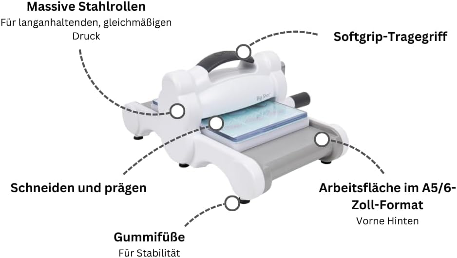 - Diese Stanz- und Prägemaschine ist das perfekte Werkzeug für eine Reihe von kreativen Aktivitäten für jeden, vom Anfänger bis zum Experten! Stanzt und prägt viele verschiedene Materialien mit einer Breite von bis zu 15,24 cm.