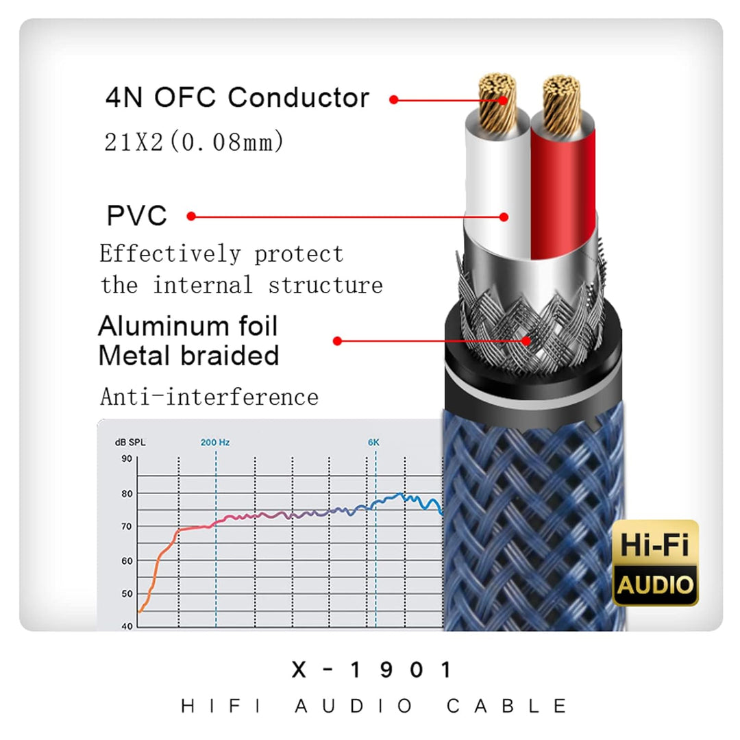 - OFC Kupfer mit OD 8,0mm Aussendurchmesser, 24k vergoldete Anschlüsse und Premium weich geflochtener Überzug. Zweifach abgeschirmtes Innenleiter sorgt für verbesserte Abschirmung und HiFi-Erlebnisse. Die Klangqualität ist stabil, es gibt keine