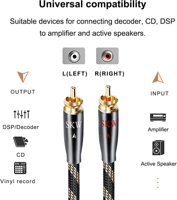 - Kompatibel mit allen Audiogeräten mit 2RCA-Anschlüssen (links/rechts) für DVD-/Blue-Ray-Player, DJ-Equipment, Fernseher, Verstärker, Lautsprecher, Xbox 360, PS3, Wii, HDTV, A/V-Receiver, Heim-Stereo-Soundsysteme.