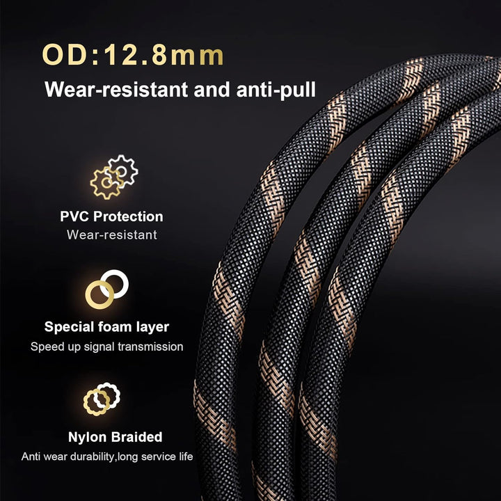 - 19AWG, Drahtdurchmesser=12.8mm. Ultrahochreines Kupfer mit 24K vergoldeten Steckern, oxidationsbeständig und feuchtigkeitsresistent, langlebiger und nylongeflochtener Kabelmantel.