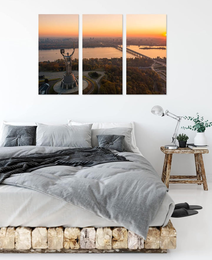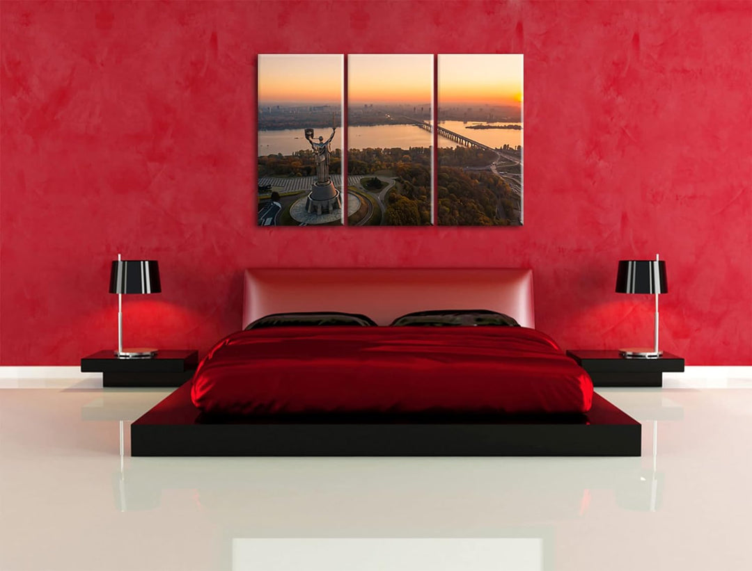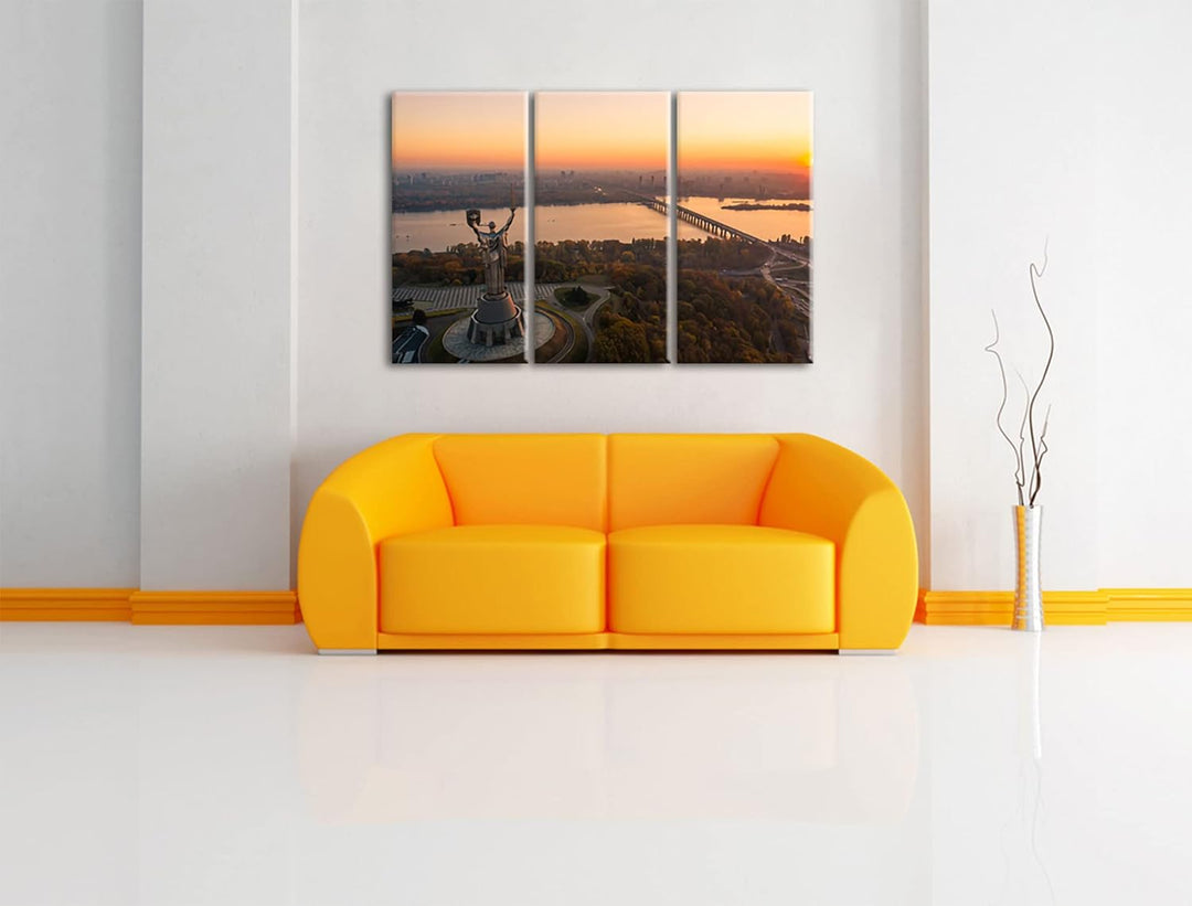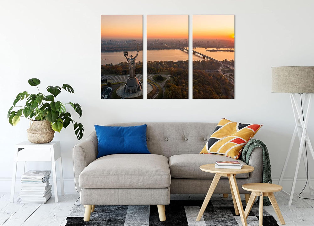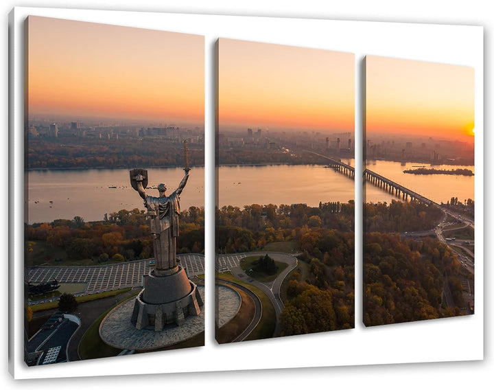 Skyline Kiew Sonnenuntergangals Leinwandbild 3 teilig | Grösse: 120x80 cm | Wandbild | Kunstdruck |