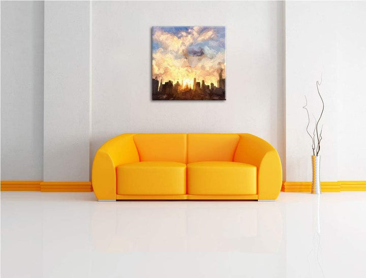 Skyline von Chicago, Format: 70x70 auf Leinwand, XXL riesige Bilder fertig gerahmt mit Keilrahmen, K