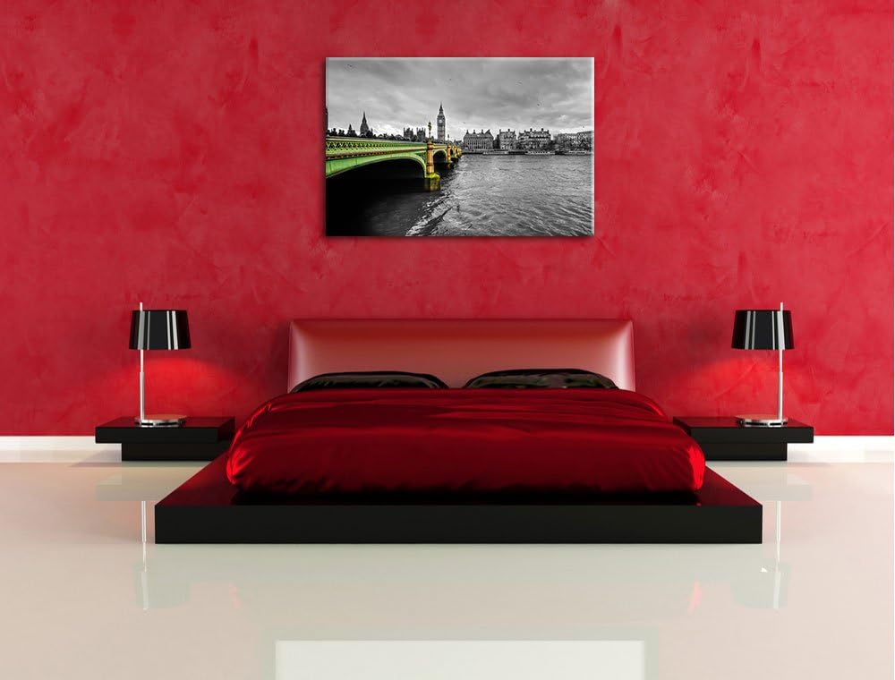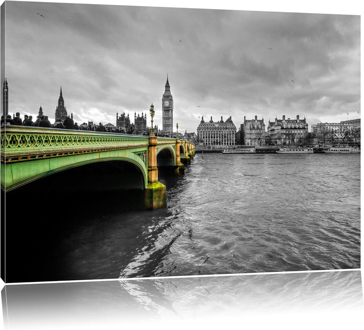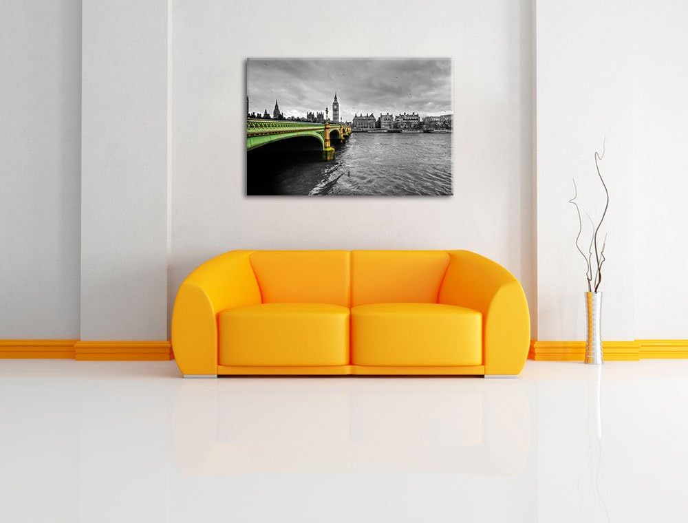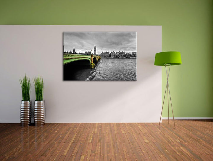 Skyline von London mit Themse und Big Ben schwarz/weiss Format: 100x70 auf Leinwand, XXL riesige Bil