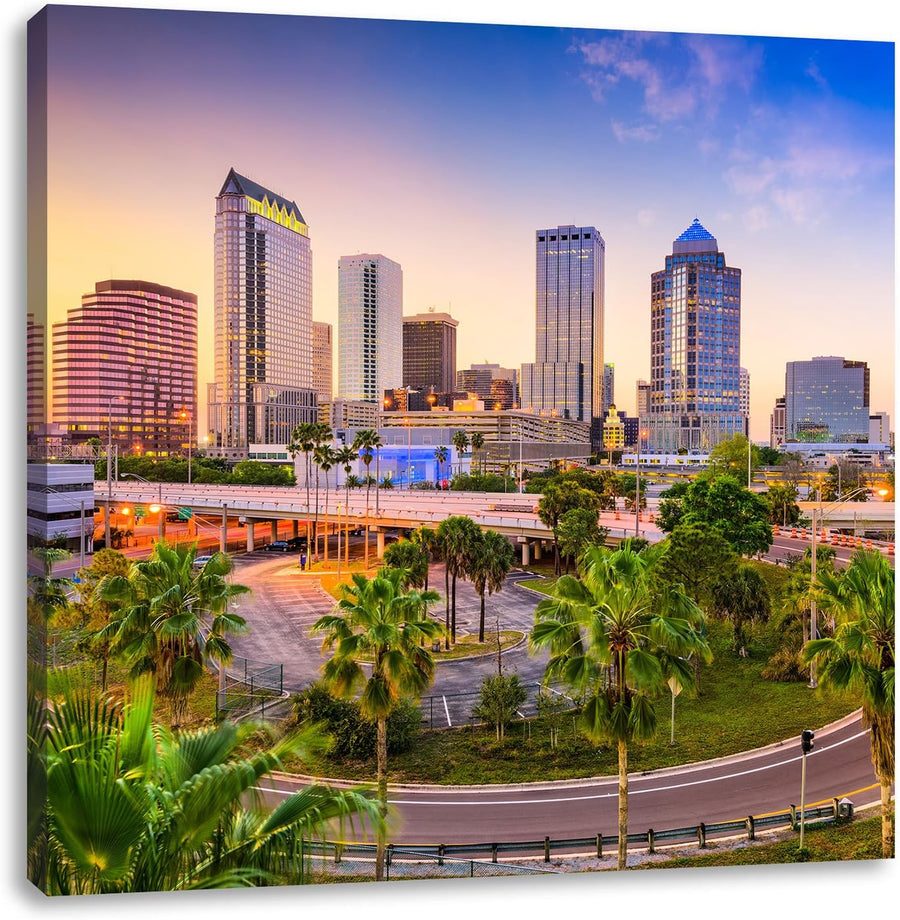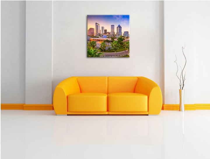 Skyline in den USA, Format: 70x70 auf Leinwand, XXL riesige Bilder fertig gerahmt mit Keilrahmen, Ku