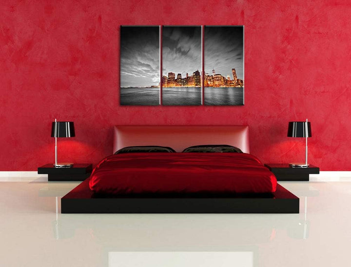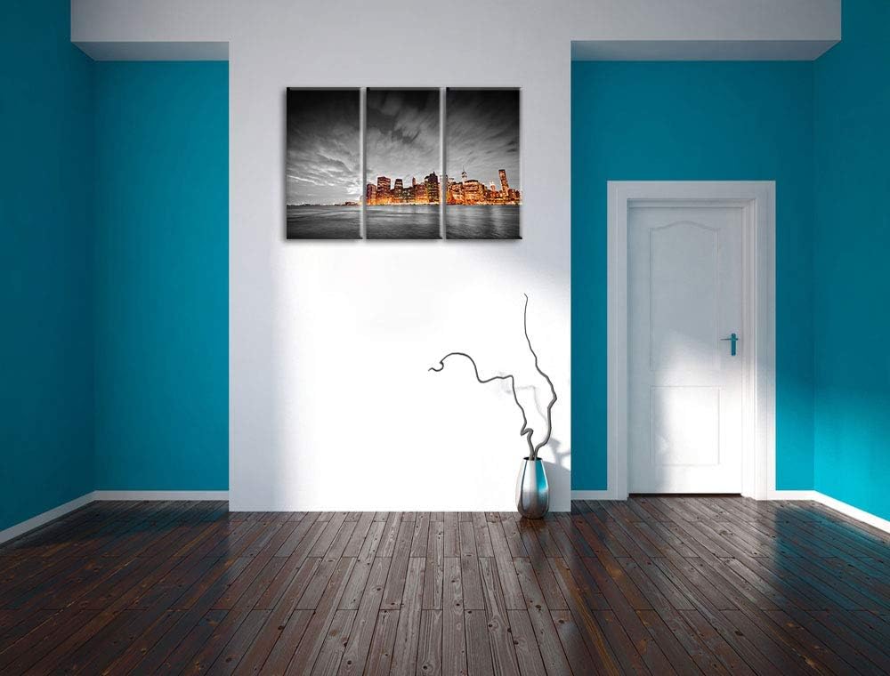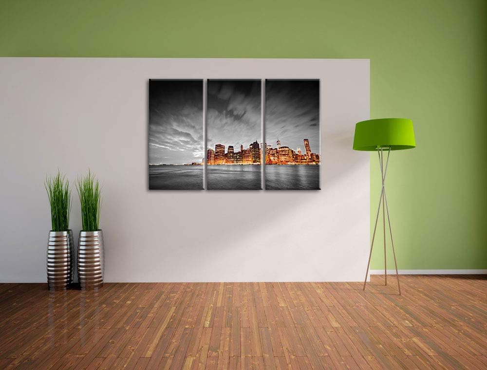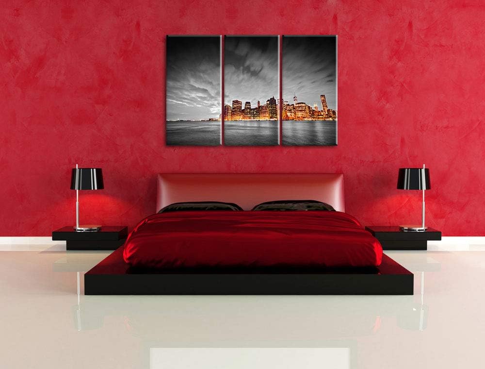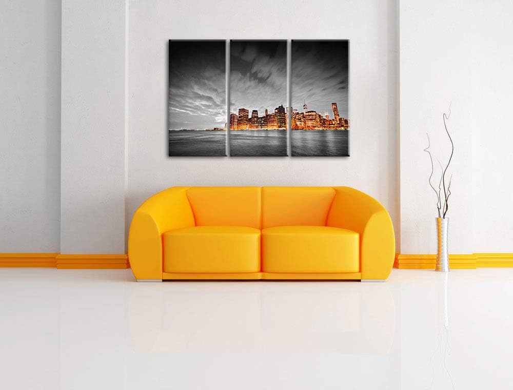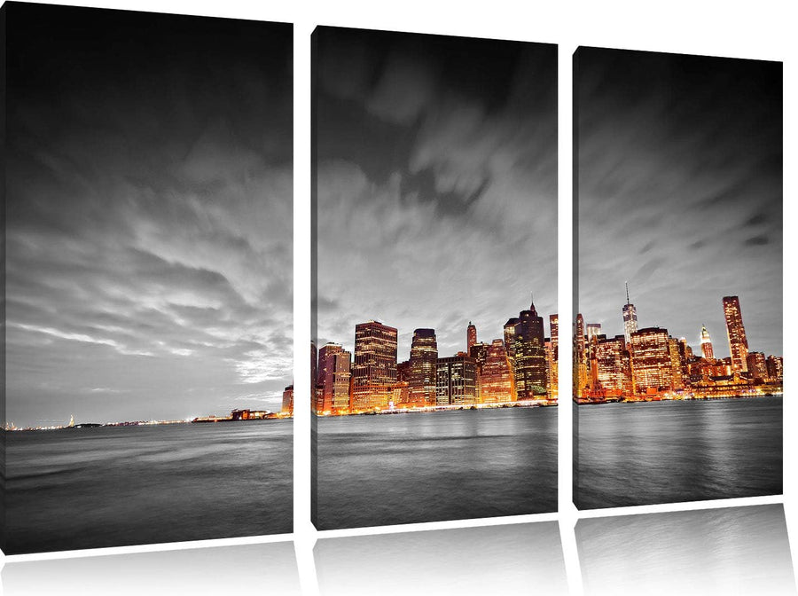 Skyline von New York bei Nacht schwarz/weiss 3-Teiler Leinwandbild 120x80 Bild auf Leinwand, XXL rie