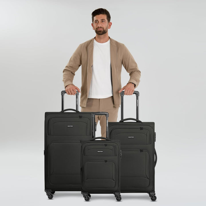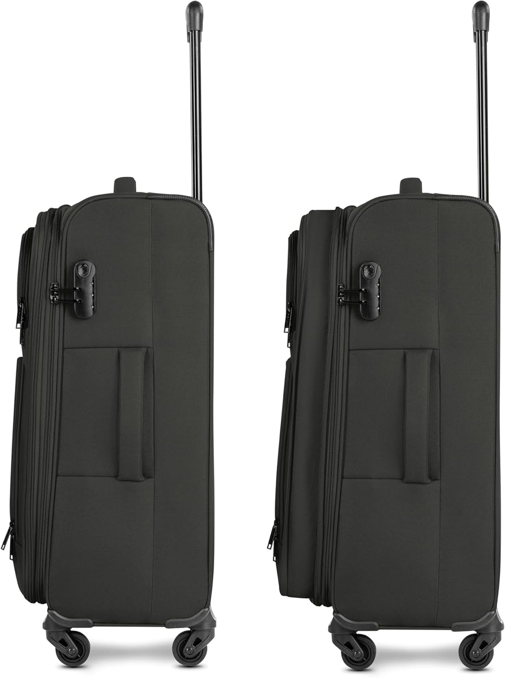 - VIEL PLATZ: Das Kofferset enthält 3 Weichgepäck-Koffer in unterschiedlichen Grössen. Der grosse Koffer bietet mit seinen 46x31x78 cm (LxBxH) und 3,6 kg viel Stauraum für ausgiebige Reisen bis ca. 21 Tage. Der mittlere Koffer misst 41x27x67 cm und 3,1