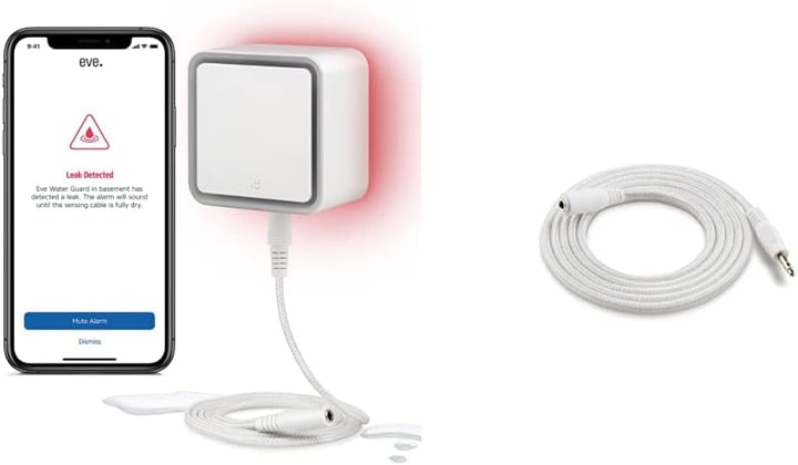 - Teuren Wasserschäden vorbeugen: Der Wassermelder erkennt auslaufendes Wasser sofort und alarmiert akustisch mit 100 dB, visuell über rotes Blinken und per Mitteilung auf Apple iPhone, iPad oder Apple Watch