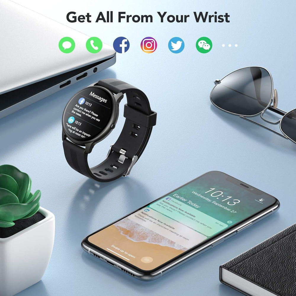 - ⌚【Multifunktionale intelligente Sportuhr】 Zeichnen Sie Ihre täglichen Aktivitäten wie Anzahl der Schritte, Entfernung, verbrannte Kalorien und Erinnerungen an sitzende Sitze genau auf. Unterstützt mehrere Sportmodi wie Laufen, Radfahren usw. Sie