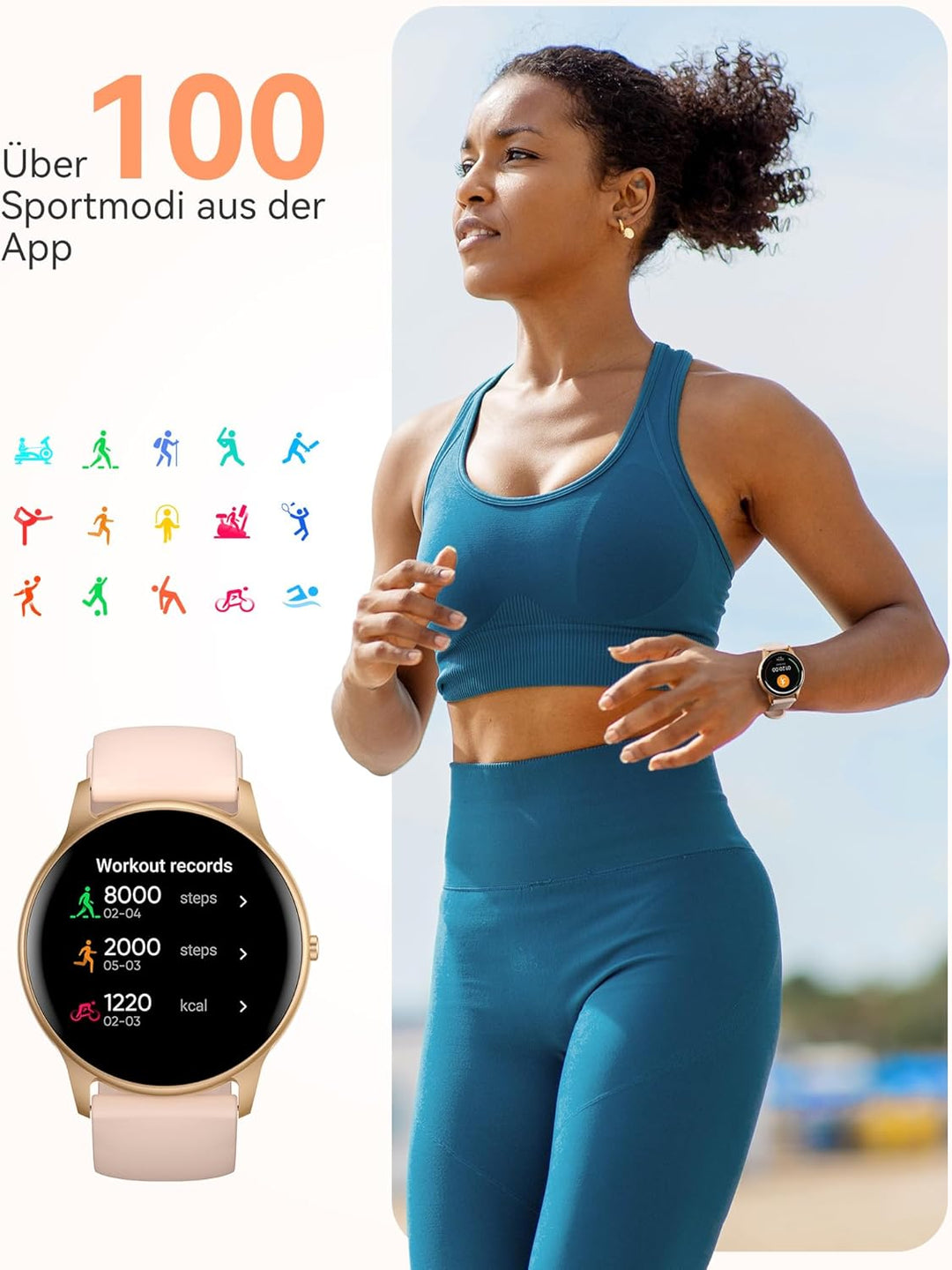 - ⌚【Multifunktionale intelligente Sportuhr】 Zeichnen Sie Ihre täglichen Aktivitäten wie Anzahl der Schritte, Entfernung, verbrannte Kalorien und Erinnerungen an sitzende Sitze genau auf. Unterstützt mehrere Sportmodi wie Laufen, Radfahren usw. Sie