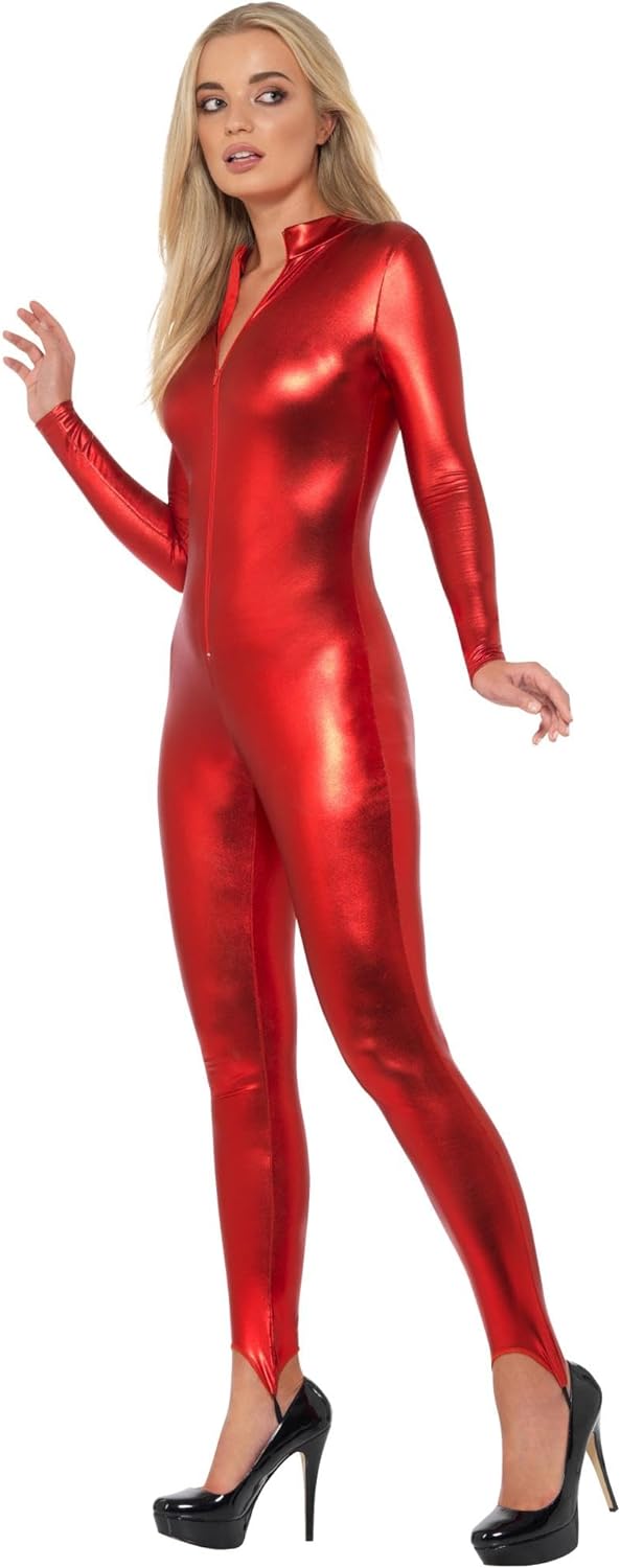 - Enthält Fever Miss Whiplash Kostüm, Rot mit Reissverschluss Catsuit