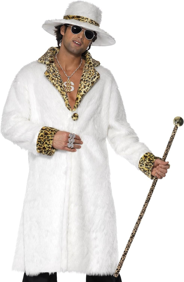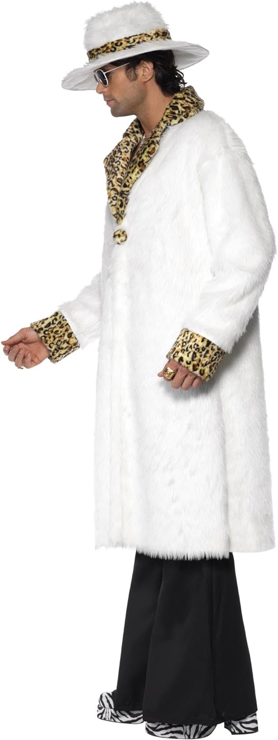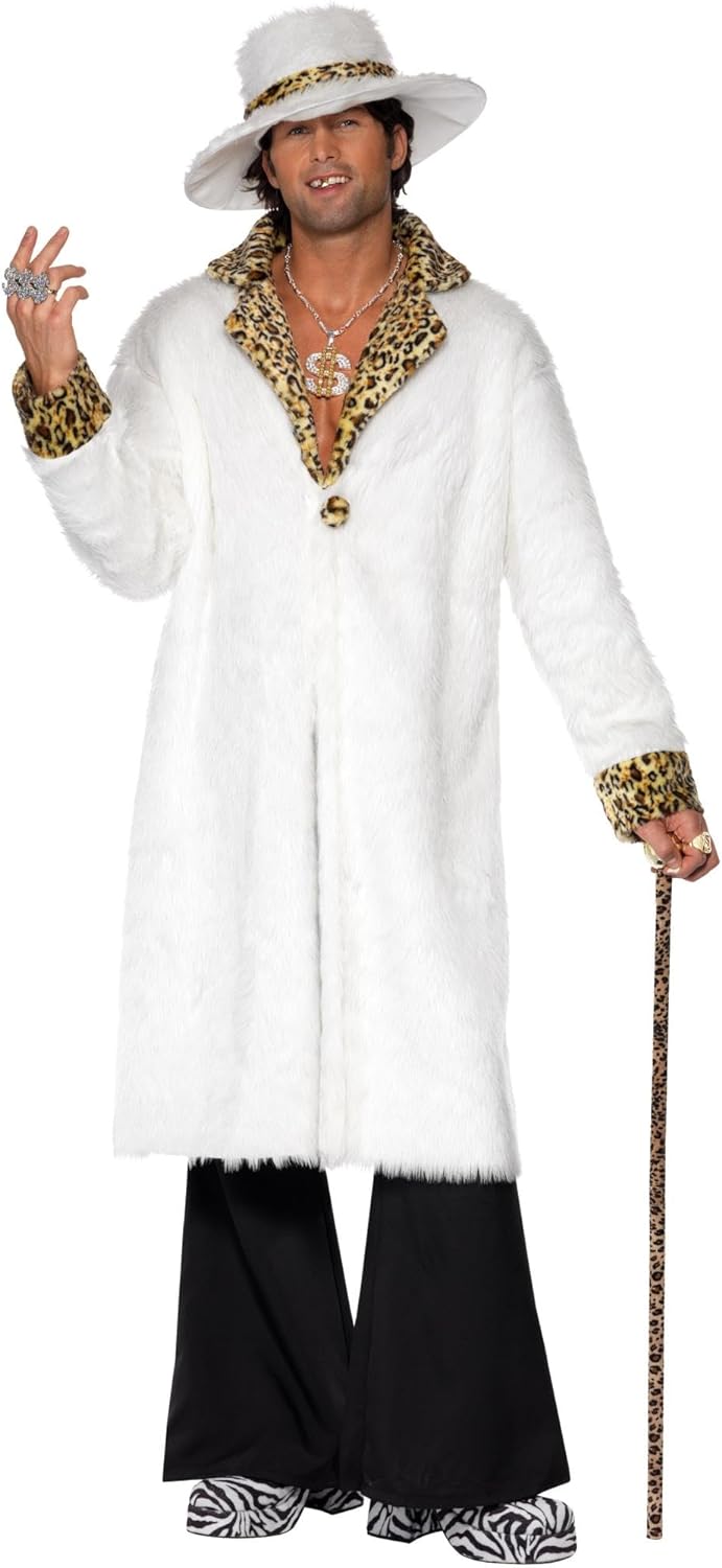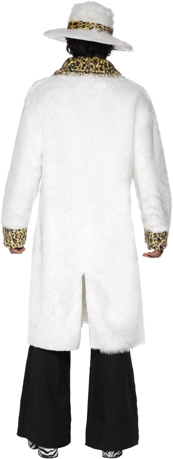 - Lieferumfang: 1 Smiffys Herren Pimp Kostüm, Fellimitat Mantel, Hut und Hose, Beinhaltet nicht: Stock, Sonnenbrille, Halskette, Ring und Schuhe, Farbe: Weiss, Grösse: M