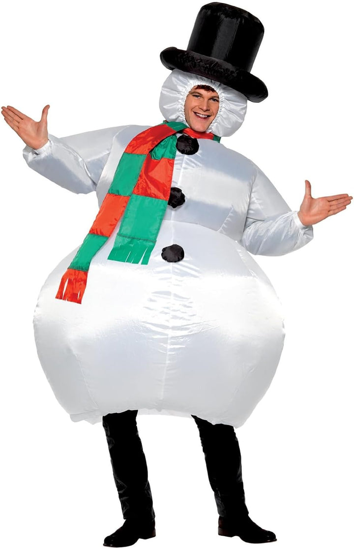- Aufblasbarer Schneemann für Herren, Inklusive: Anzug mit Hut, Schal und selbstaufblasendem Gebläse, Ideal für Innen- und Aussenveranstaltungen, Perfekt für Karneval, Halloween oder Themenpartys