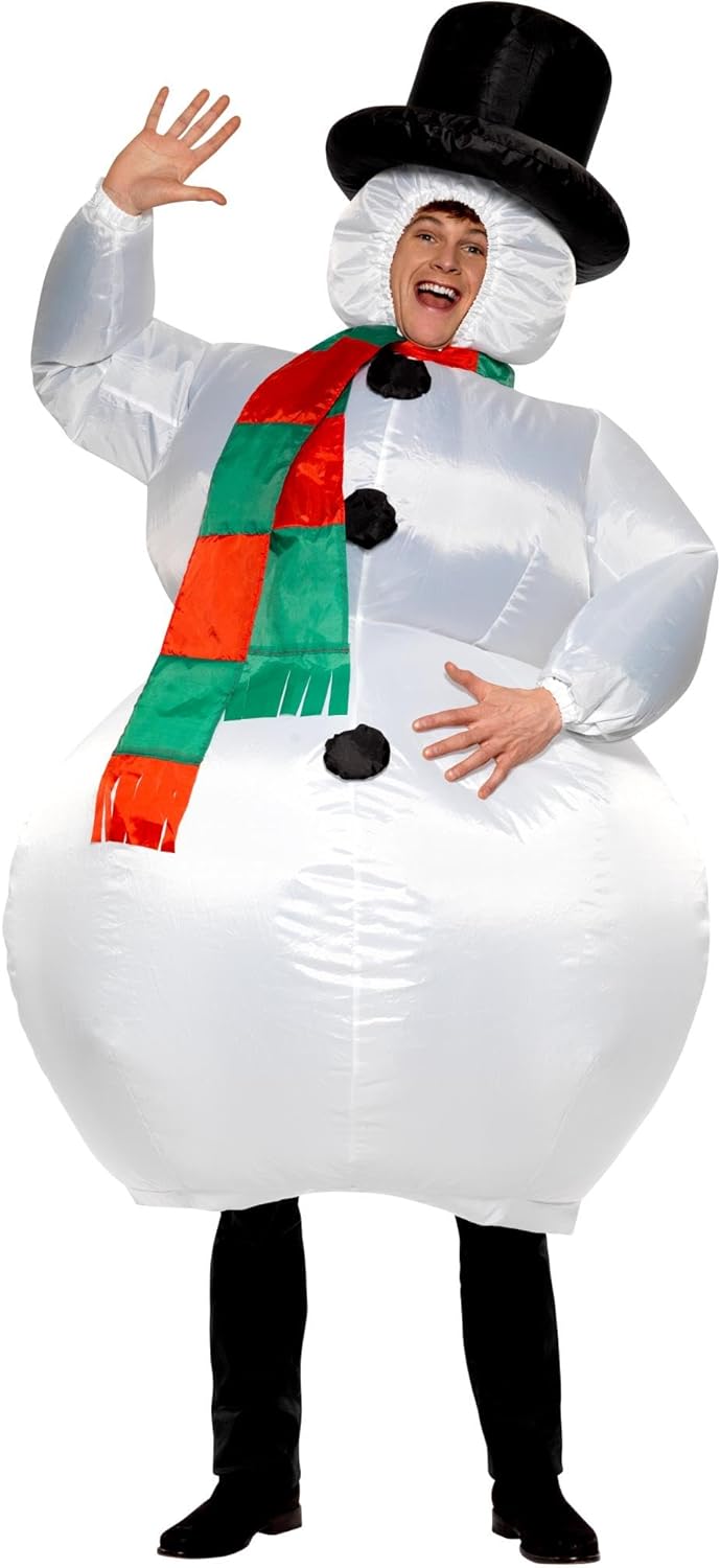 - Lieferumfang: 1 Smiffys Herren Aufblasbarer Schneemann Kostüm, Anzug mit Hut, Schal und selbstaufblasendem Gebläse, Beinhaltet nicht: Hose und Schuhe, Farbe: Weiss, Grösse: One Size