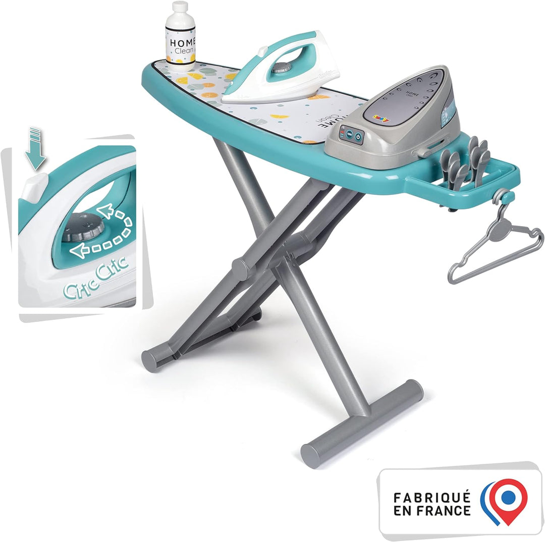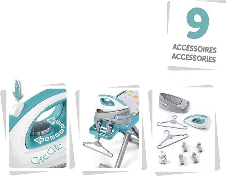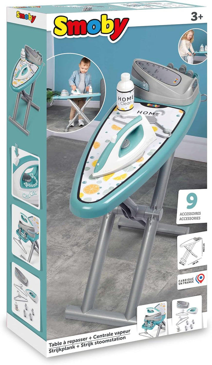 Smoby - Bügelbrett mit Dampfstation - mit Bügeleisen, Wäscheklammern, Soundgeräuschen, klappbar, für