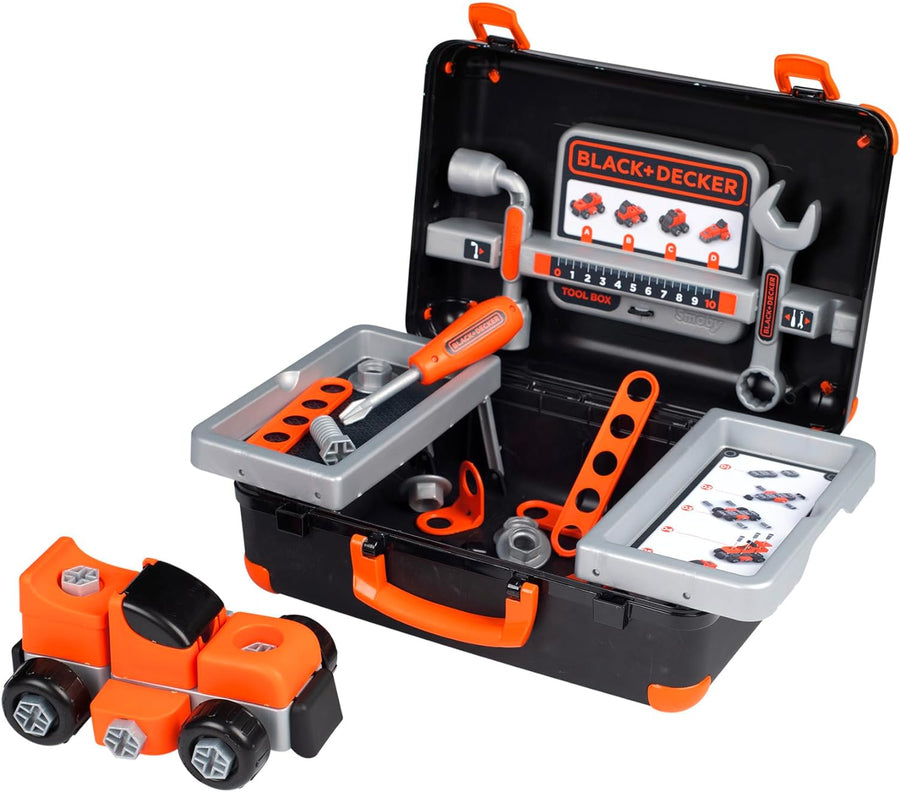 - Tragbare Kinder-Werkstatt - In ihrem ausklappbaren Black+Decker Werkzeugkoffer haben die kleinen Handwerker das wichtigste Werkzeug wie Schraubendreher und Schraubenschlüssel immer griffbereit!