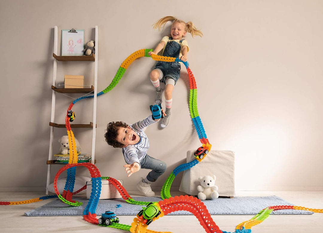 - Für Kinder ab 4 Jahren – Die Rennstrecke kann von Jungen und Mädchen ab 4 Jahren sicher bedient werden und fördert zudem das Grundverständnis für physikalische Zusammenhänge. Das ideale Geschenk