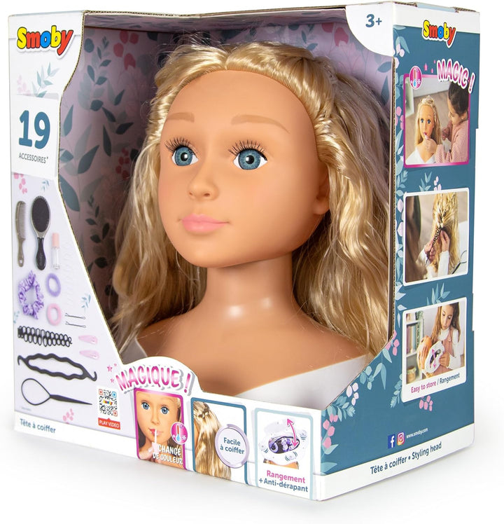 - Dies ist ein Spielzeug von Smoby, einem Unternehmen, das von Kindern in der ganzen Welt geliebt wird. Dieses Spielzeug stammt aus einer Serie, die sich vor allem an Mädchen richtet. Dieser Frisierkopf stellt ein junges Mädchen mit blauen Augen und