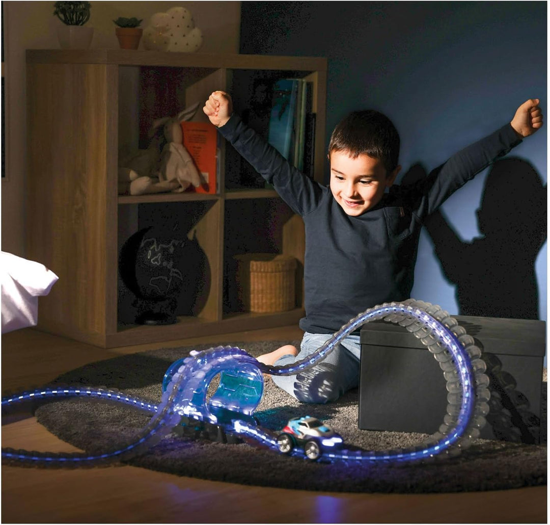 - Inkl. Rennauto & Tunnel - Das exklusive Neon-Rennauto mit Scheinwerfern & der elektronische Lichttunnel erstrahlen ebenfalls in bunten Lichtern - wahlweise in einer Farbe nach Wahl oder per Zufall