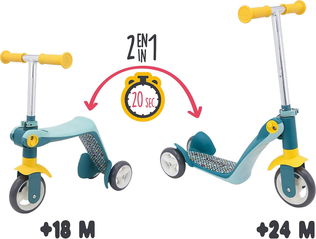 - Zwei in einem! Mit wenigen einfachen Schritten und ohne Werkzeug lässt sich dieser 3-Rad-Gleiter von Smoby zu einem stilvollen Roller verwandeln.