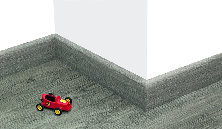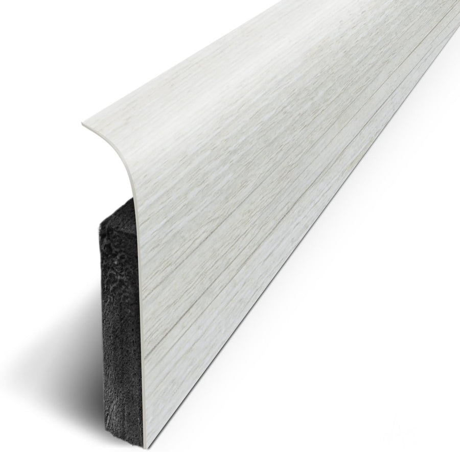 - Die Sockelleisten bestehen aus einem mit einer Dekorfolie überzogenen Schaumstoff und sind flexibel, um sich den Unregelmässigkeiten der Wände anzupassen.
