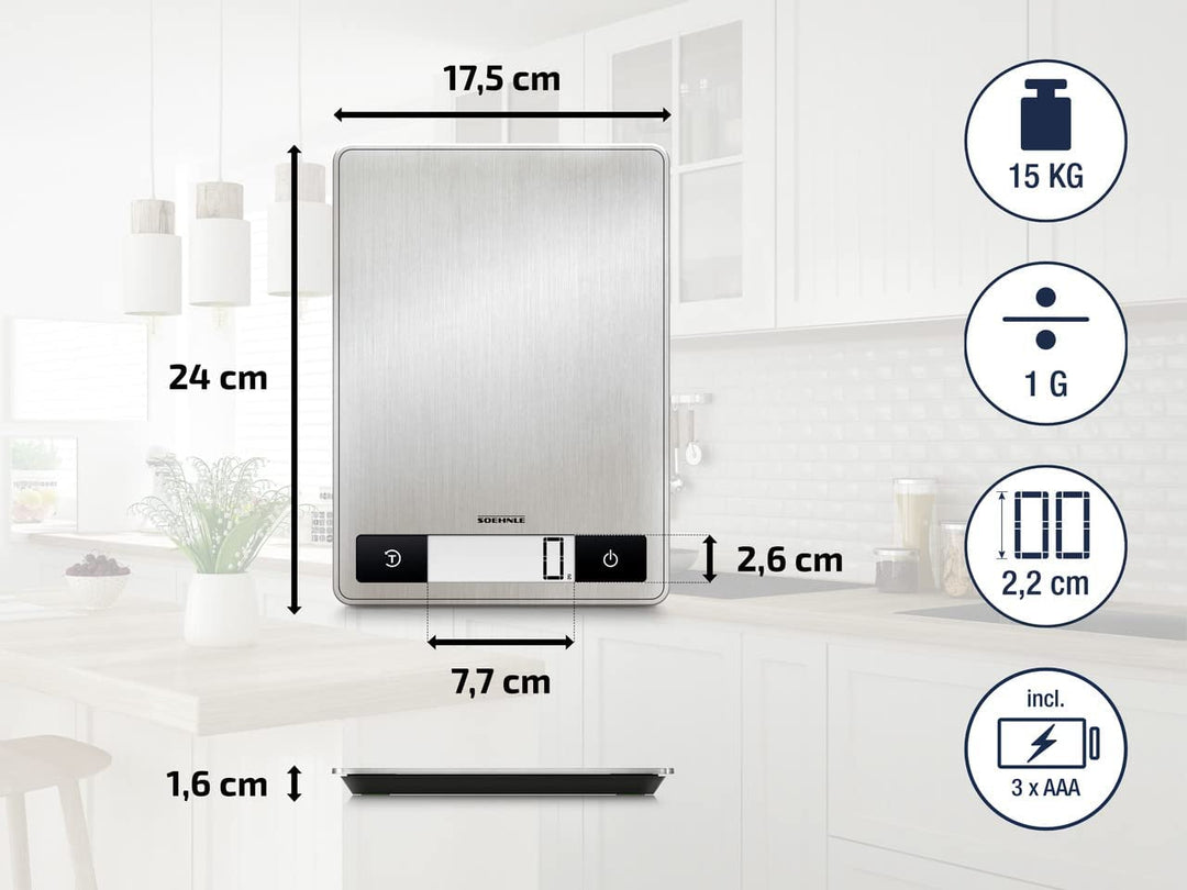 - Unempfindliche Wiegefläche - dank hochwertigem Edelstahl mit Anti-Fingerprint-Beschichtung