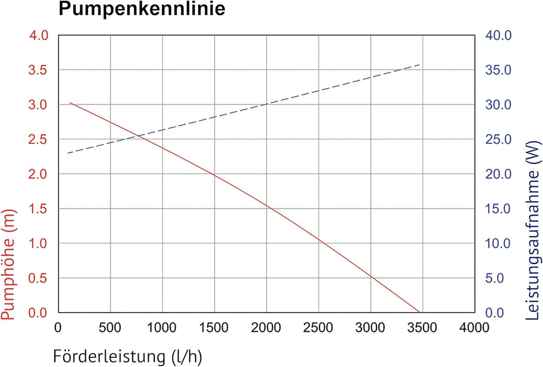 - Hochwertige elektronische Teichpumpe mit Trockenlauf- und Überlastungsschutz - max. 3.500 l/h Förderleistung - max. Förderhöhe 2,5 m - Schlauchanschluss: 25, 32 und 38 mm - Kabellänge an der Pumpe: 5 m