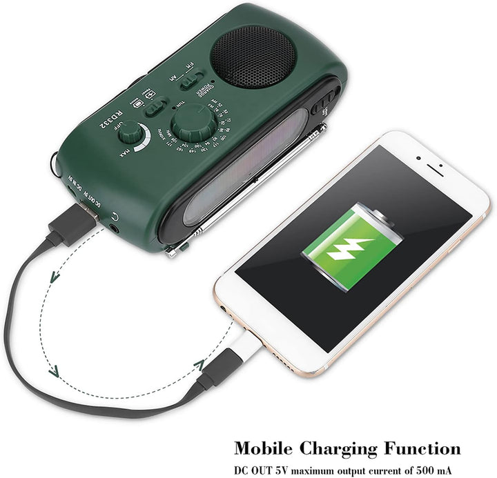 - 【Drei Möglichkeiten zum Aufladen】 Unser Notfall-Solarhandkurbelradio kann über ein Solarpanel, einen Akku (nicht im Lieferumfang enthalten) aufgeladen und über USB aufgeladen werden. Es kann auch als Powerbank zum Aufladen von Geräten wie
