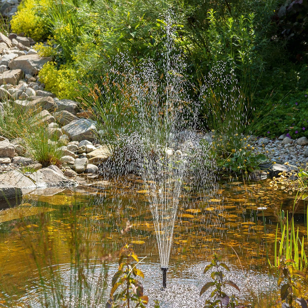 • Ideal für den Betrieb in mittleren bis grösseren Teichen, Brunnen etc. Ein Schlauch (ø 13 mm) kann angeschlossen werden! Extragrosses Solarmodul für besten Anlauf auch bei weniger Sonne!