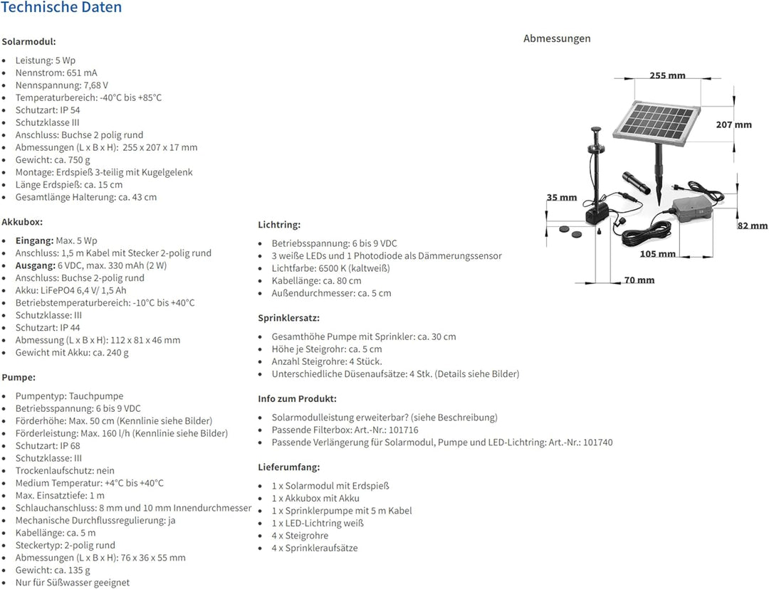 - Inkl. 4 Steigrohren und 4 unterschiedliche Sprinkleraufsätze (siehe Bild). Langlebige, verschleissarme Pumpe